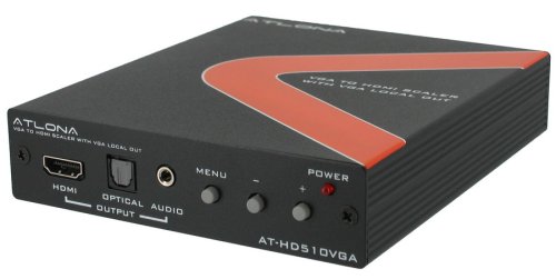 The VGA2HDMIPRO VGA to HDMI Audio Video Converter with scaler takes an analog VGA video signal and converts to a digital HDMI or DVI-D output. The device has a built-in scaler that will allow you to adjust the output signal to a resolution that is compatible with your HDMI (or DVI) display. In addition to the video conversion, the device also features both a 3. 5mm and Toslink audio connection providing the option to output the accompanying audio combined into the HDMI output, or through a separate TosLink cable to your television or home theater receiver. A perfect solution for bridging your analog technology with a newer DVI or HDMI device while maintaining high-quality video and audio performance (up to 1900x1200 / 1080p). The VGA to HDMI converter/scaler features an automatic native resolution detection feature that make it easy to setup and ensures broad display compatibility as well as a convenient on-screen display menu offering access to several selectable output resolutions and image adjustments giving you full control of your multimedia output. Backed by a StarTech.com 1 year warranty and free lifetime technical support.