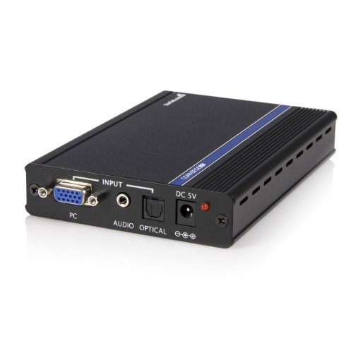 StarTech.com VGA2HDMIPRO Professional VGA to HDMI Audio Video Converter with Scaler The VGA2HDMIPRO VGA to HDMI Audio Video Converter with scaler takes an analog VGA video signal and converts to a digital HDMI or DVI-D output. The device has a built-in scaler that will allow you to adjust the output signal to a resolution that is compatible with your HDMI (or DVI) display. In addition to the video conversion, the device also features both a 3. 5mm and Toslink audio connection providing the option to output the accompanying audio combined into the HDMI output, or through a separate TosLink cable to your television or home theater receiver. A perfect solution for bridging your analog technology with a newer DVI or HDMI device while maintaining high-quality video and audio performance (up to 1900x1200 / 1080p). The VGA to HDMI converter/scaler features an automatic native resolution detection feature that make it easy to setup and ensures broad display compatibility as well as a convenient on-screen display menu offering access to several selectable output resolutions and image adjustments giving you full control of your multimedia output. Backed by a StarTech.com 1 year warranty and free lifetime technical support.